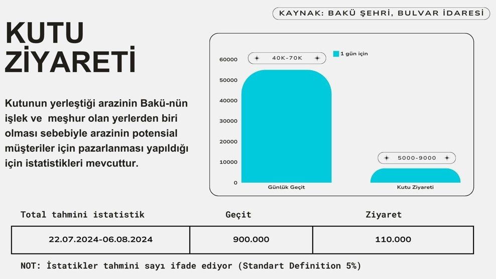 As part of the campaign, a large, visually striking gift box installation (2m x 2m x 2m) was placed in high-footfall locations such as Targovy Street and Baku Boulevard. The installation remained outdoors for 15 consecutive days and was designed to be fully weather-resistant and photo-friendly, encouraging passersby to take selfies and share content online.